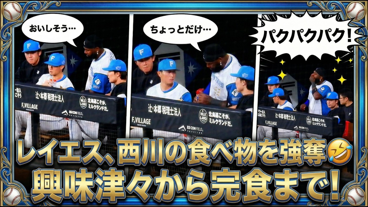 【20260404】レイエスが西川遥輝の食べ物に興味津々。パクパク食べ始める🤣