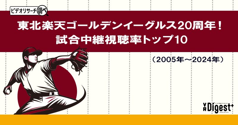 本記事では、2024~2025年に現球団として20周年を迎えたプロ野球球団のうち、「東北楽天ゴールデンイーグルス」(本拠地:宮城)を対象に、過去20年(2005~2024年)の試合中継の高視聴率ランキングをまとめました。