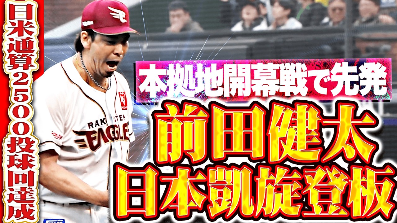 NPB復帰後初登板となった東北楽天・前田健太。初回を3者凡退の幸先の良い立ち上がりを披露。2回は無死満塁のピンチを背負うも、味方守備にも助けられ無失点で切り抜ける。しかし、3回以降もピンチを背負う場面が多く、5回途中83球5安打2失点でマウンドを降りた。復帰後初勝利はおあずけとはなってしまったが、日米通算2500投球回を達成!! 3828日ぶりのNPB登板は悔しい結果とはなったが、百戦錬磨のベテランはきっと次回以降の登板でも魅せてくれるだろう。