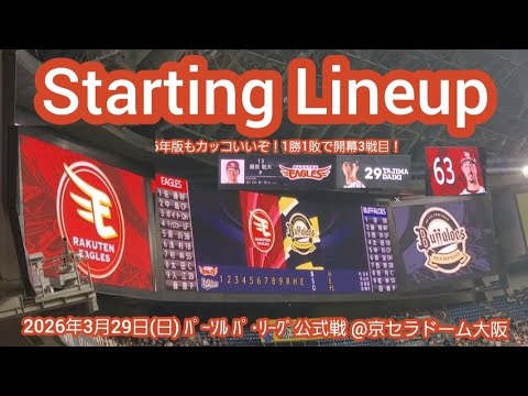 20260329【開幕3戦目!】両チームのスタメン発表・審判【オリックス・バファローズvs東北楽天ゴールデンイーグルス】試合前【2026年もカッコいい&新YUTO】@京セラドーム大阪・レフト外野下段