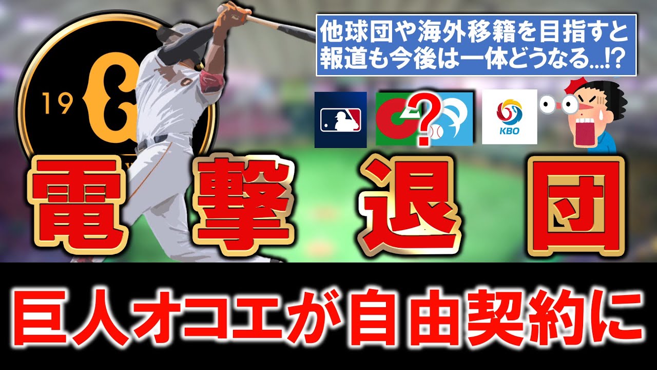 【まさかの電撃退団に!?】巨人『オコエ瑠偉』外野手が保留者名簿から外れ自由契約になると発表!今後は他球団や海外移籍を目指すと報道も一体どうなる…!?