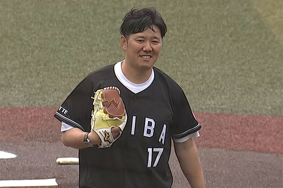 打席に立った竹原直隆氏を相手に投じた球は、変わらないフォームから球速98キロで内角低めにズバリ。精密機械は健在だった。大役を終え「こうしてファンの皆さんが温かく迎えてくれて、本当にマリーンズファンのすごさというか、愛を感じました。コールや拍手もすごく嬉しくて、改めて野球人生の中でも、マリーンズで過ごした時間は本当に楽しかったなと思います」とコメントした。