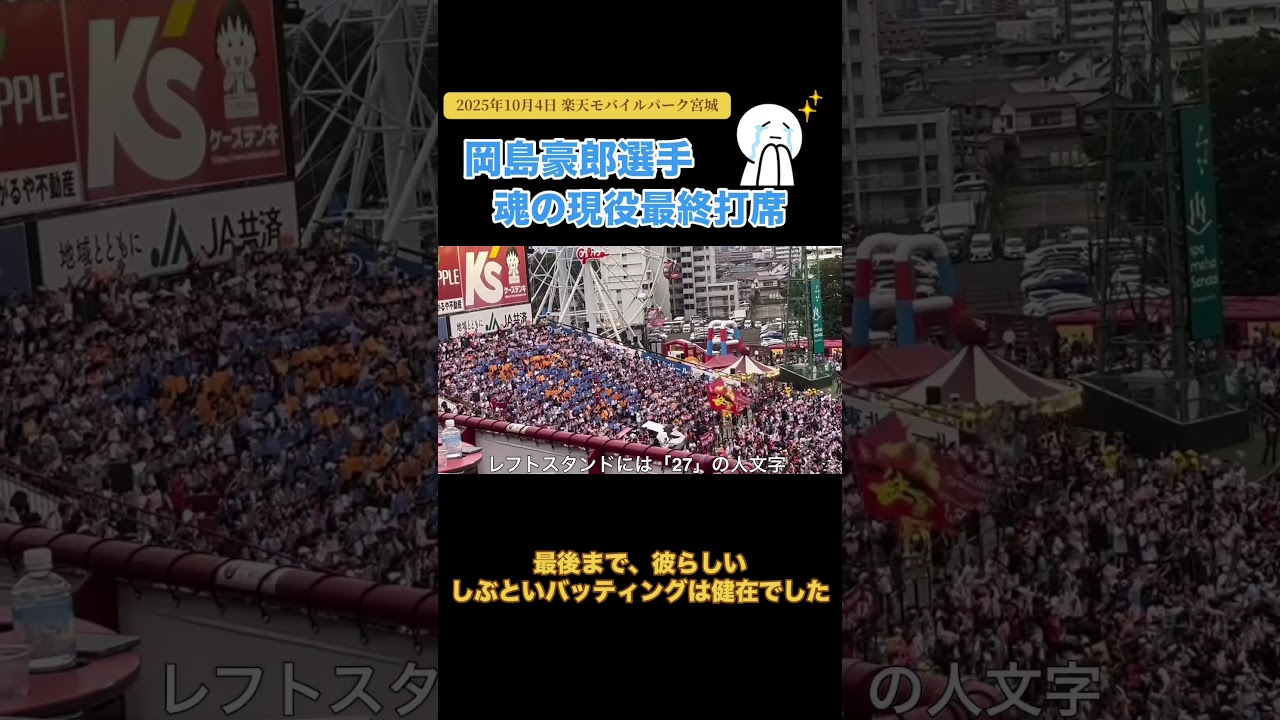 【楽天イーグルス】岡島豪郎選手、魂の現役最終打席! 2025年10月4日 楽天モバイルパーク宮城 @village1208 #プロ野球 #楽天イーグルス #rakuteneagles #埼玉西武ライオンズ #岡島豪郎 #楽天Mobileパーク宮城 #楽天モバイルパーク宮城 Tohoku Rakuten Golden Eagles岡島豪郎東北楽天ゴールデンイーグルス NPBHUB.COM | The Fanbase of Nippon Baseball & Nippon Professional Baseball