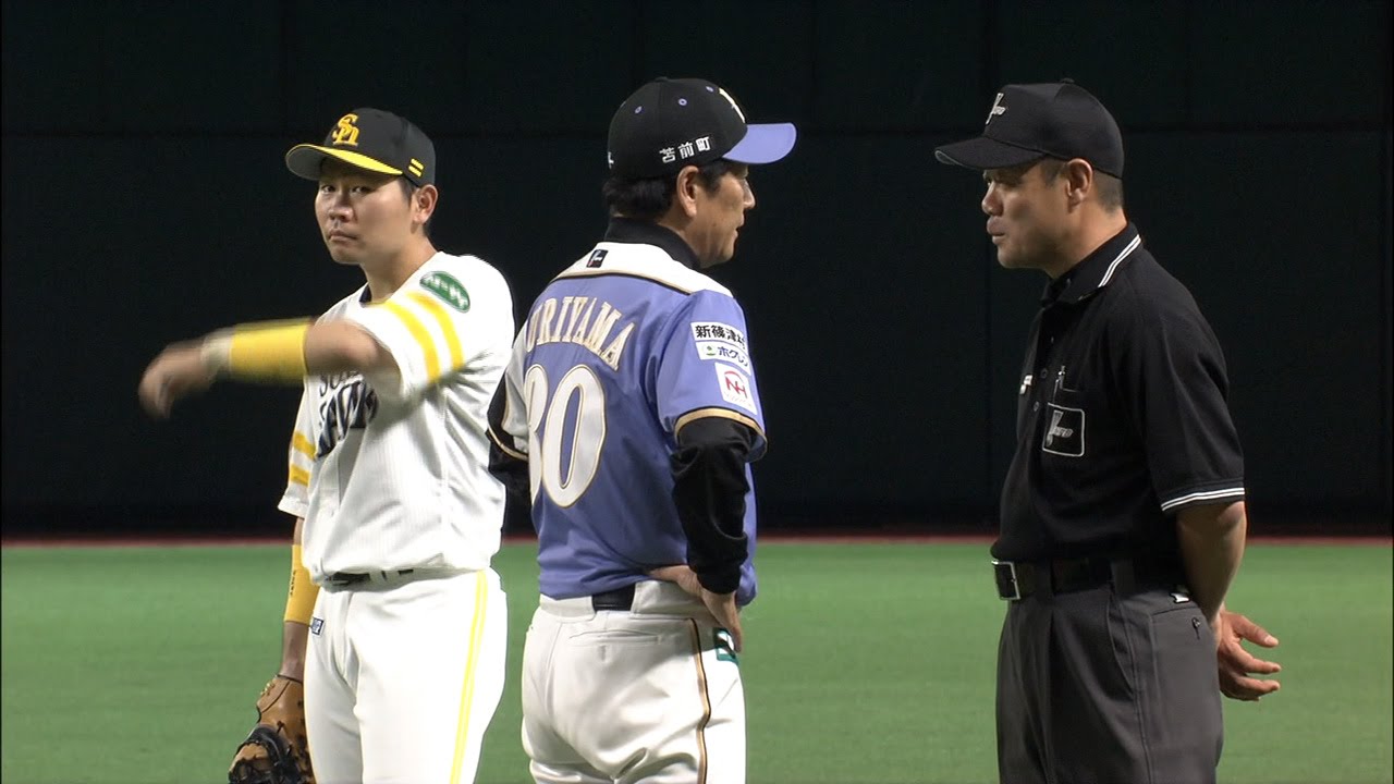 3回、中田賢の牽制で一塁走者の中島がアウトになった場面。この判定に栗山監督はすぐさまベンチを飛び出した。 (6月19日 ソフトバンク-日本ハム) #プロ野球baseballHanshin TigersNPBソフトバンクパ・リーグファイターズホークスヤフオクドーム中田賢一北海道好プレー日本ハム栗山英樹福岡阪神タイガース NPBHUB.COM | The Fanbase of Nippon Baseball & Nippon Professional Baseball