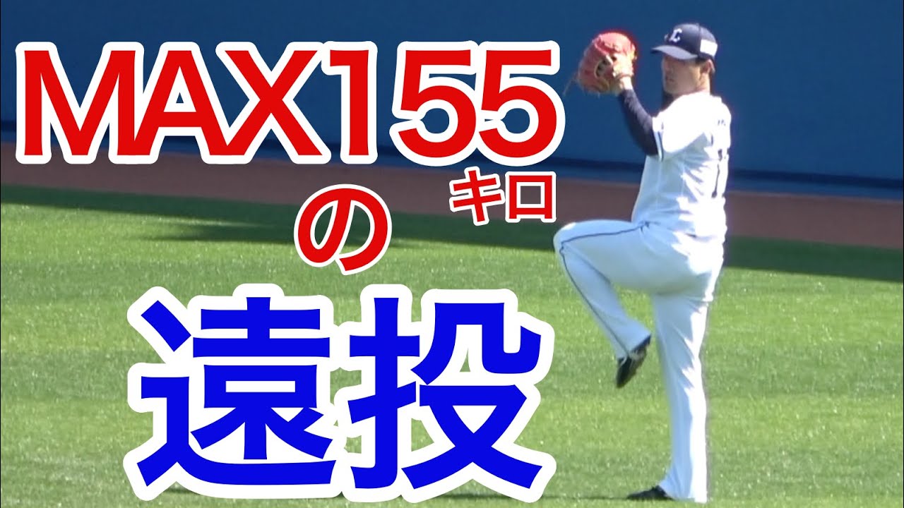 ノビて失速しない球!剛腕 松本航投手の試合前の遠投!ノーステップで軽々!