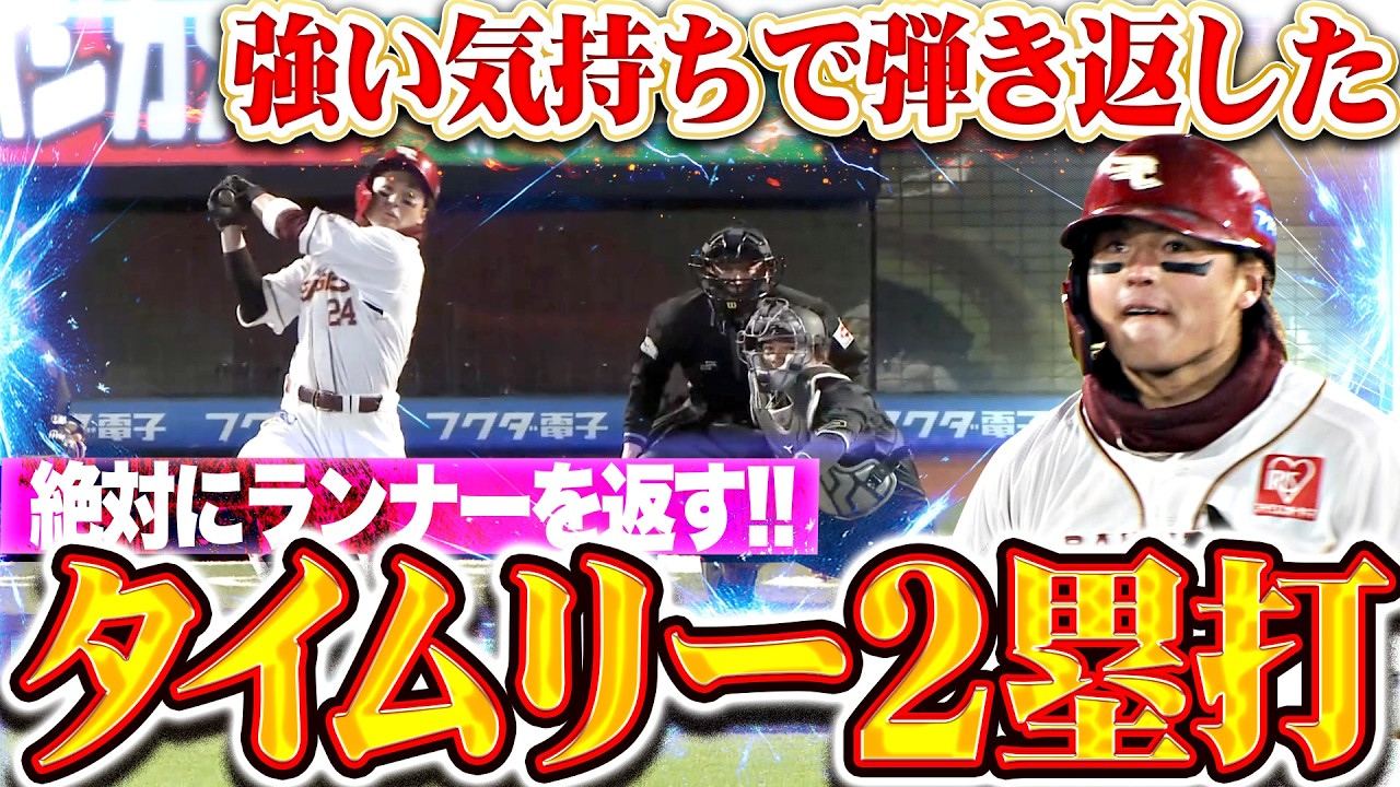 4回裏、走者を2人置き、東北楽天・黒川史陽がレフトへのタイムリーを放つ!! この一打で2者がかえって2点を先制。イーグルスが中盤にまずは流れを作った!!