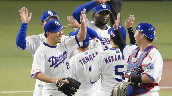 2軍本拠地の移転先を公募している中日。写真は今季初勝利を喜ぶ中日ナイン(写真:共同通信社)