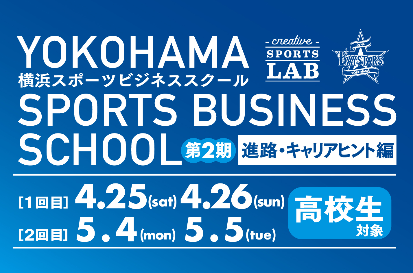 CSLでは、「高校生対象 横浜スポーツビジネススクール〜進路・キャリアヒント編〜」を昨年に引き続き開催いたします。