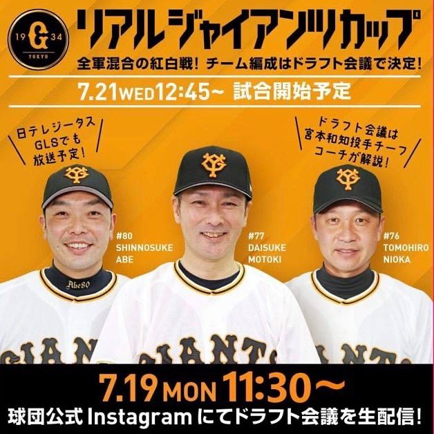 19日11時30分より、球団公式Instagramで「#Gドラフト会議」を生配信📱