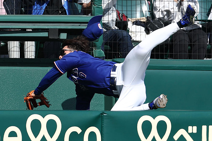 佐藤のファウルゾーンに飛んだ打球を追いかけるも…