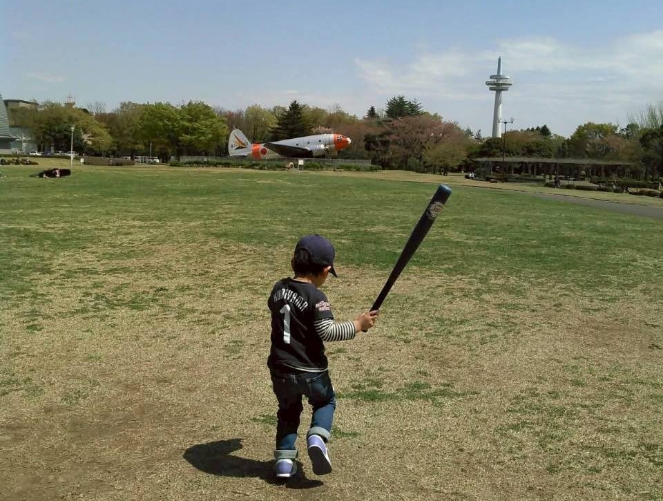 2016年入園式の前日。「何したい?」と聞くと、返ってきたのは「野球したい!」向かったのは、所沢航空記念公園。