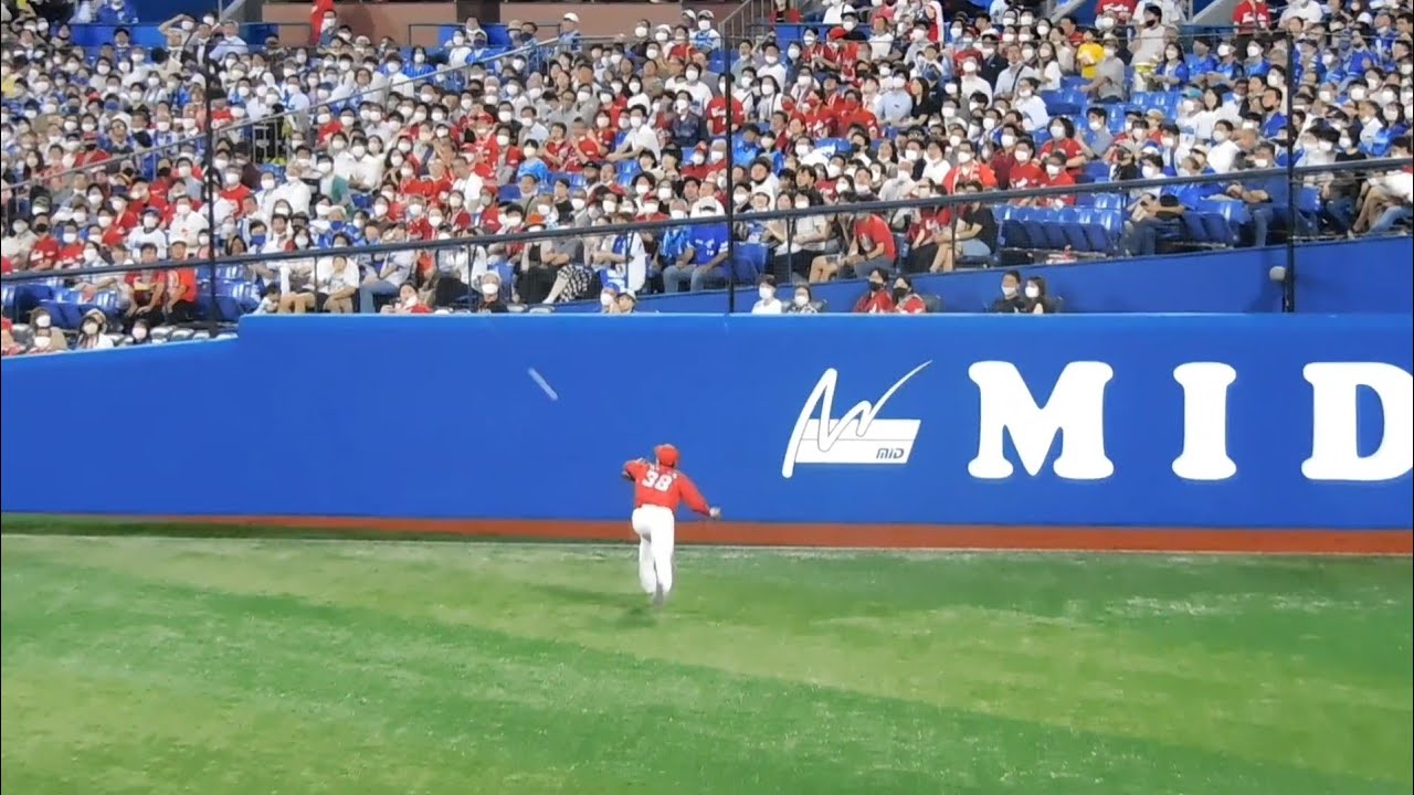 広島カープ宇草孔基ファインプレーでレフトスタンドのカープファンを湧かせる