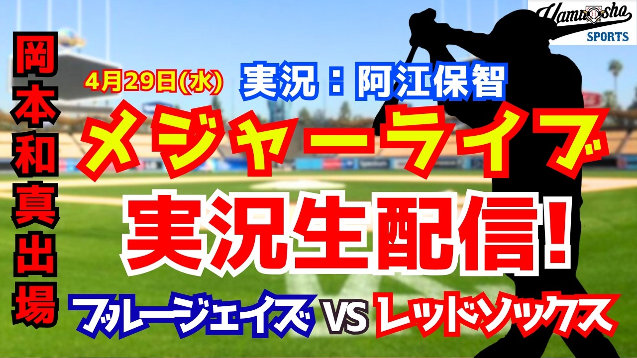 2026年4月29日 ブルージェイズ対レッドソックス 戦を実況生配信でお送りします。