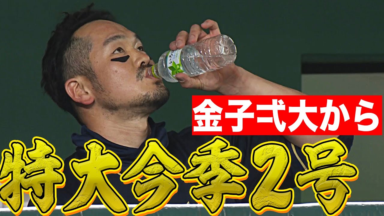 T-岡田の今季2号は美しい弾道のライトへ特大2ランホームラン。いつもよりも水が美味しそうに見えます。
