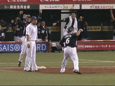 ここまで当たりの無かった井口資仁が延長になってから貴重なタイムリー。ベンチ、コーチ、そして井口自身も渾身のガッツポーズ!(2010年10月10日 埼玉西武ライオンズ対千葉ロッテマリーンズ) 101010月10日201010102010年Chiba Lotte Marinesパ・リーグパシフィックリーグマリーンズライオンズロッテ井口資仁千葉千葉ロッテマリーンズ埼玉好プレー西武西武ドーム NPBHUB.COM | The Fanbase of Nippon Baseball & Nippon Professional Baseball