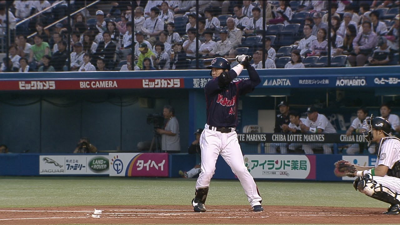 交流戦開幕のこの日、ヤクルトが初回に幸先よく先制点を手にした。二死一、三塁のチャンスで打席に入った雄平は、しぶとくタイムリーとなる内野安打を放つ。打撃好調な雄平がチームの連勝を伸ばすべく先制点を生み出した。 (5月20日 ロッテ-ヤクルト)