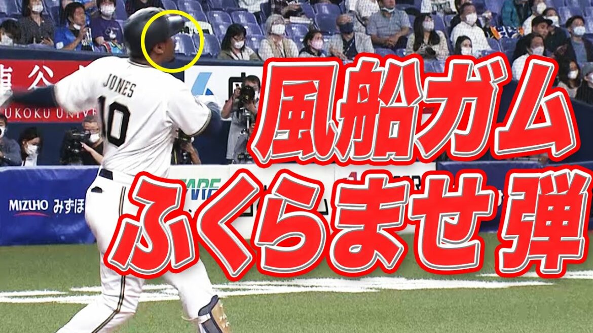これは衝撃。オリックス・ジョーンズがスイング直後に見せたまさかの風船ガムふくらまし。どうしてこれでホームランが打てるのか、理解できません…。