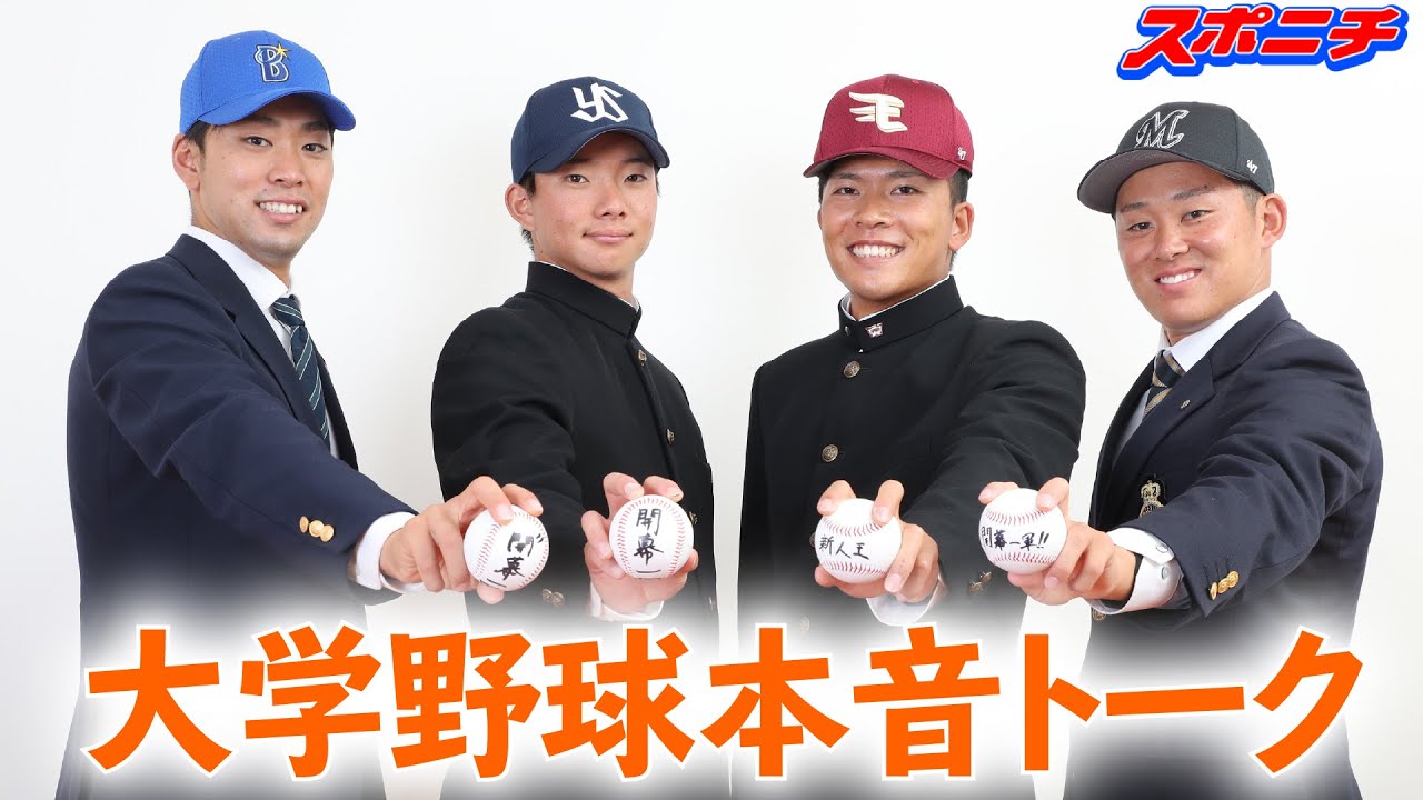今秋ドラフトで東京六大学野球から1位指名された4投手の対談が実現した。楽天1位の早大・早川隆久、DeNA1位の明大・入江大生、ロッテ1位の法大・鈴木昭汰、ヤクルト1位の慶大・木澤尚文。しのぎを削った4人だからこそ話せるお互いの印象やエピソードを披露。笑いが絶えない対談となった。(聞き手・松井 いつき)