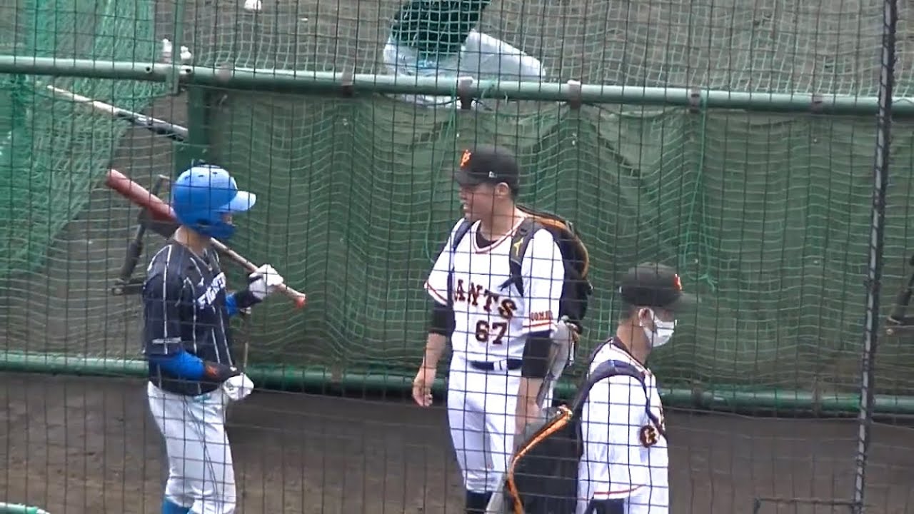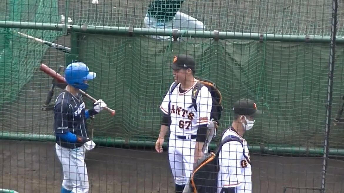 巨人2軍に現れた山瀬慎之助と仲良く話す日ハム細川凌平 【読売ジャイアンツ 対 北海道日本ハムファイターズ 2022年3月30日 ジャイアンツ球場】