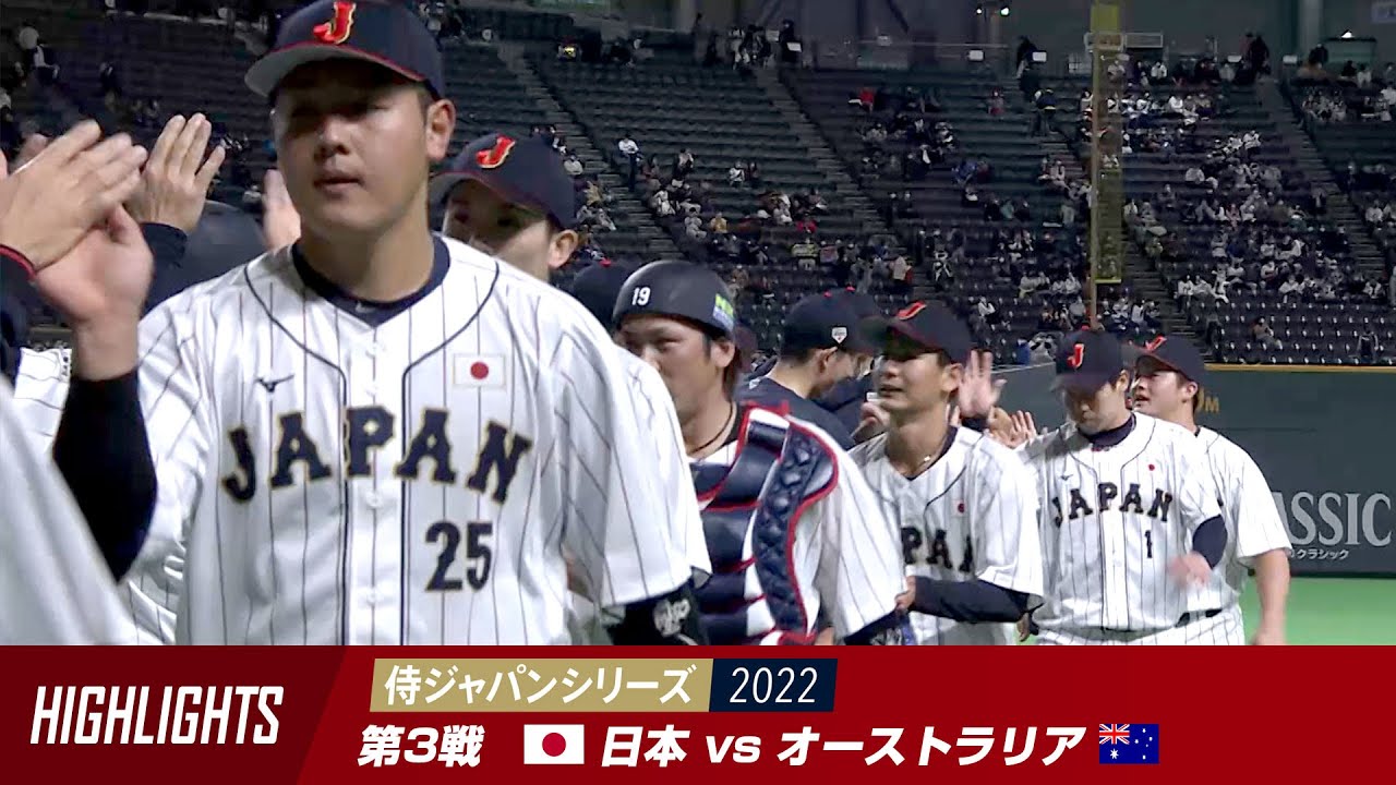 11月9日に札幌ドームで行われた侍ジャパンシリーズ2022 第3戦「日本 対 オーストラリア」。岡本和真選手の逆転打や村上宗隆選手の3試合連続本塁打、先発の今永昇太投手が4回10奪三振の好投を見せるなど投打が噛み合い8対1で大勝しました。
