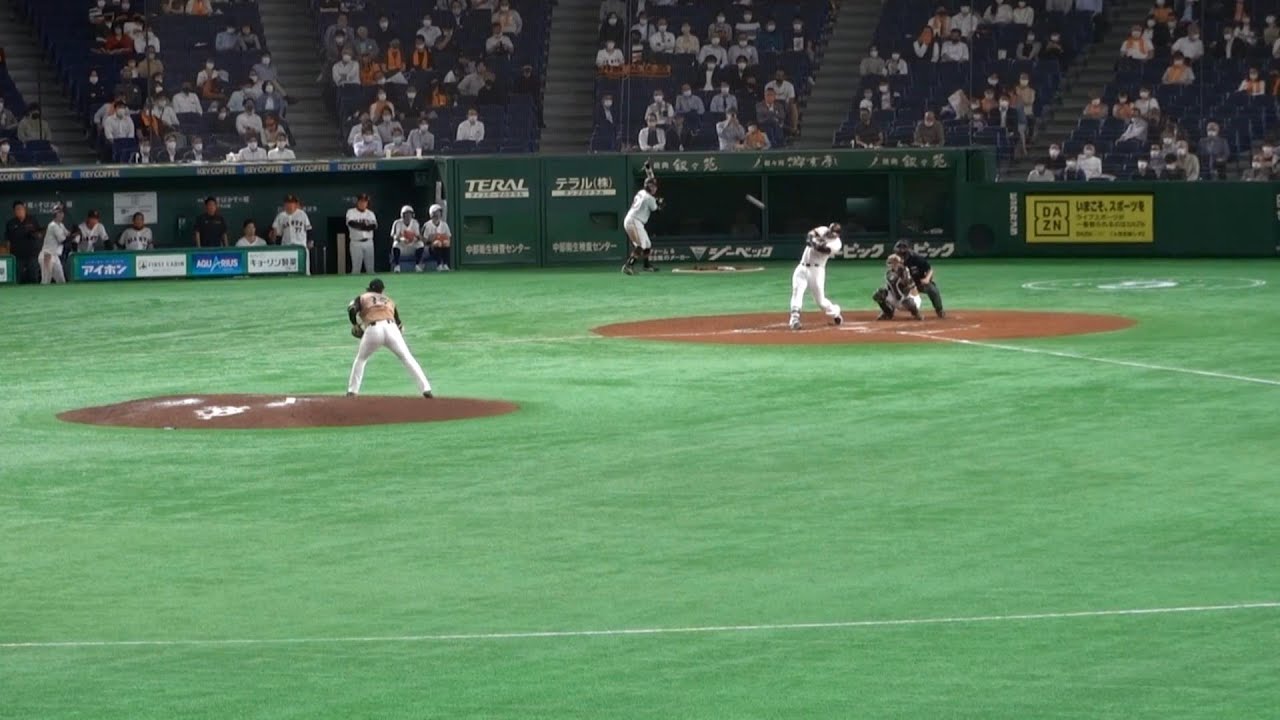 8回裏1死走者無し 投手 北海道日本ハムファイターズ西村からライトスタンドへソロホームラン Yomiuri Giantsスモーク 野球読売ジャイアンツ NPBHUB.COM | The Fanbase of Nippon Baseball & Nippon Professional Baseball