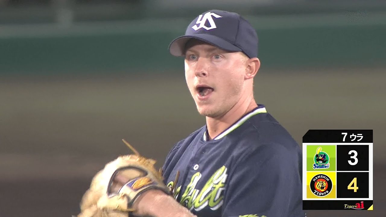 7回裏、1死一、三塁のピンチで二番手高橋奎二からバトンを受けたマクガフ。岩貞の代打中谷を三球三振に討ち取ってツーアウト。続く近本の打席、1ボールからの2球目(低めのボール)に一塁ランナー陽川が二塁盗塁。キャッチャー西田は投げる素振りも見せず。3球目にスプリットでストライクを取り、2死二、三塁、カウント2ボール1ストライクとなったここで無人の一塁へ牽制悪送球。ボールがファールゾーンを転々としている間に、同点の走者に続いて逆転の走者も生還(※公式記録はボークとエラー)し、タイガースに逆転を許した。