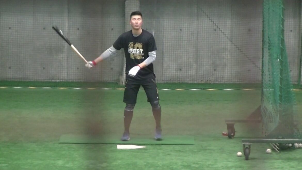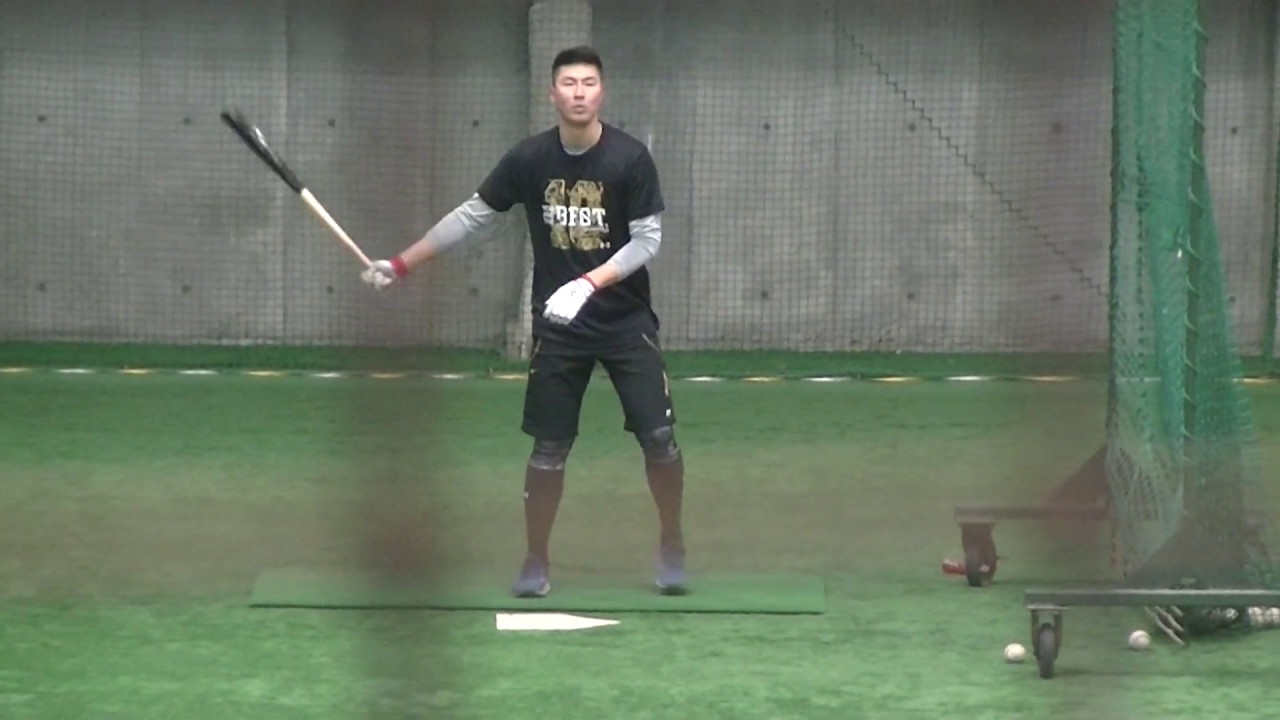【巨人ファーム合同自主トレ】 松井義弥(折尾愛真)バッティング練習中 機械が詰まる~ジャイアンツ球場2020/1/28 令和2年G球場
