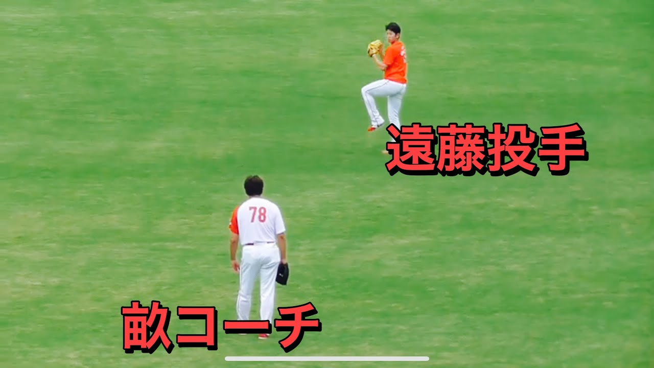 遠藤淳志投手(広島東洋カープ)畝コーチとフォームの確認及びキャッチボール