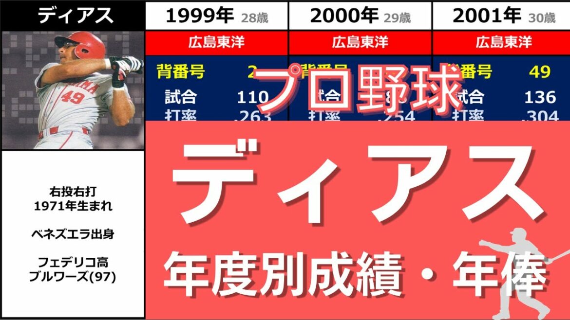 1999年に広島東洋カープに入団したディアス選手のプロ野球での成績です。