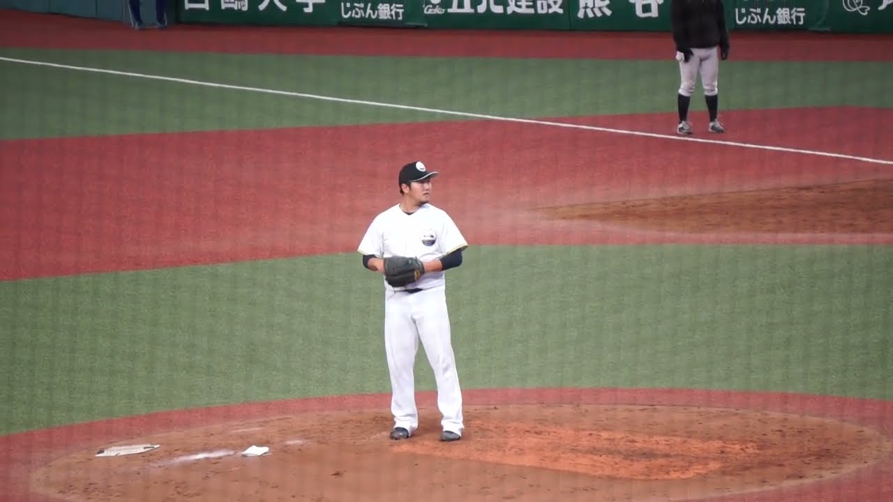 4回表 風張蓮投手がマウンドへ投球練習を始める。