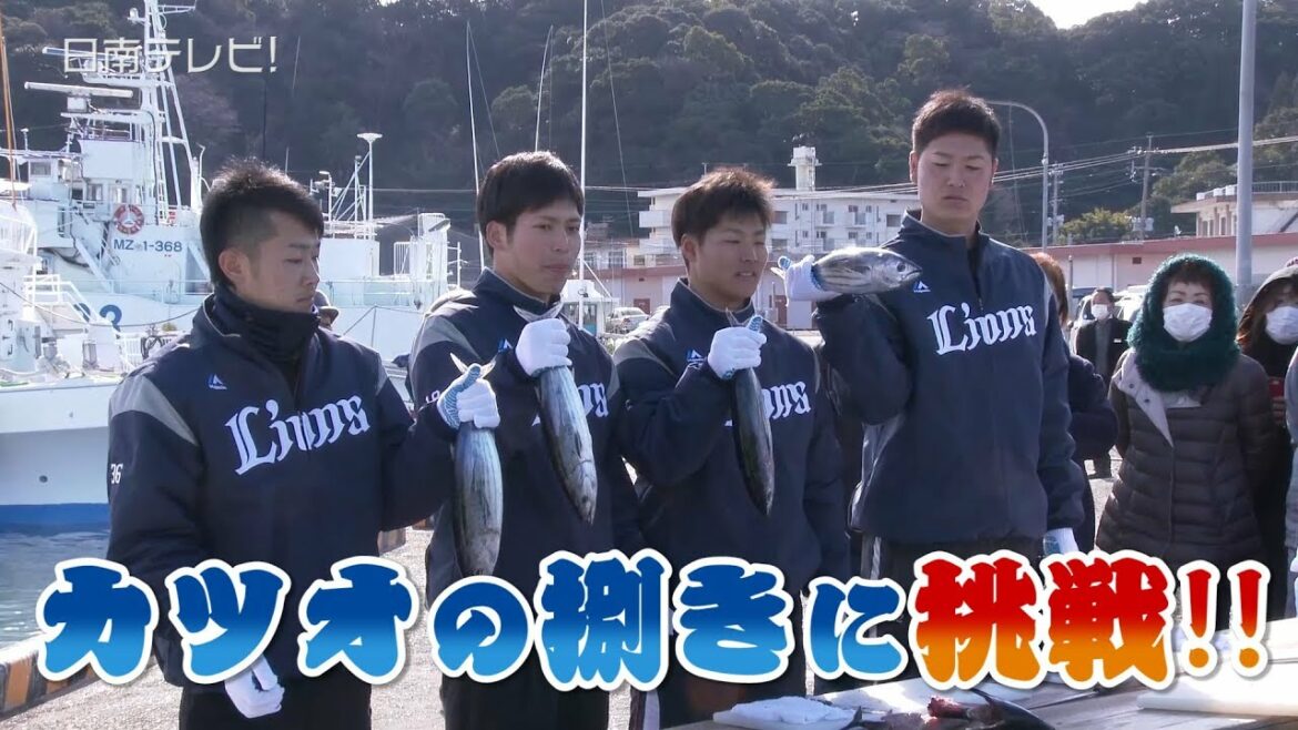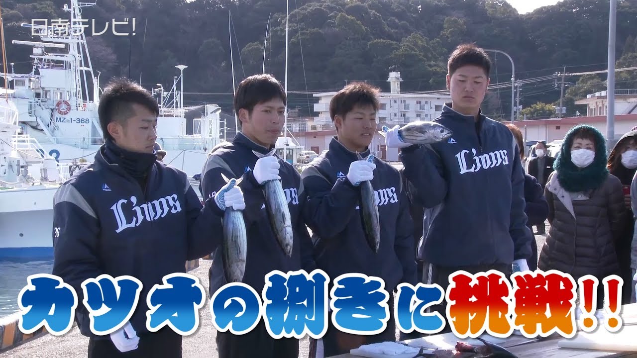 西武春季キャンプ中の若手選手が、オフの日に南郷町を満喫!観光したのは、ドラフト1位の斉藤大将投手(22歳 #19 /明大)、3位・伊藤翔投手(18歳 #36/四国IL・徳島)、2年目の中塚駿太投手(23歳 #22)、鈴木将平外野手(19歳 #46)。