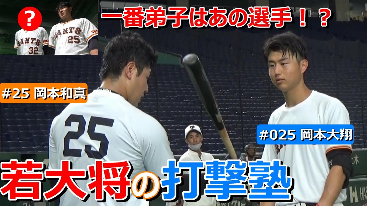 若大将・岡本和真選手の打撃練習を食い入るように見つめる、岡本大翔選手と菊田拡和選手。直接指導にも目を輝かせていました。