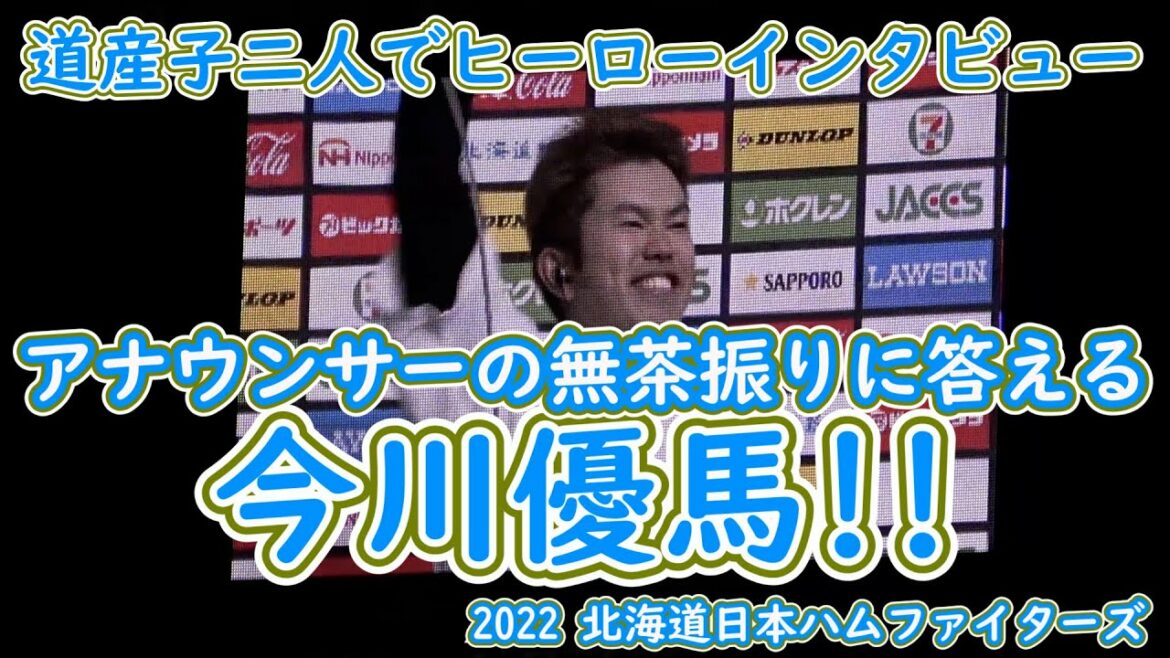 2022/04/28 北海道日本ハムファイターズ×オリックス・バファローズ BIGBOSSに呼ばれるて観客に挨拶する今川優馬 ヒーローインタビューは道産子の伊藤大海と今川優馬 最後に無茶振りされる執念・今川優馬 baseballBIGBOSSHokkaido Nippon-Ham Fightersオリックス・バファローズ今川優馬伊藤大海北海道日本ハムファイターズ新庄監督日本ハム野村佑希野球 NPBHUB.COM | The Fanbase of Nippon Baseball & Nippon Professional Baseball