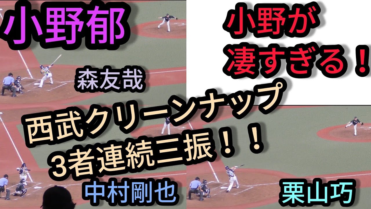 3番森友哉選手、4番中村剛也選手、5番栗山巧選手を三者連続三振を奪うシーンです。