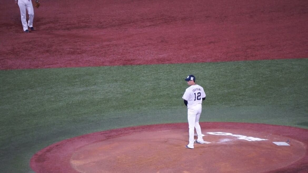 00:00 7回表 石山泰稚投手がマウンドへ投球練習を始める。