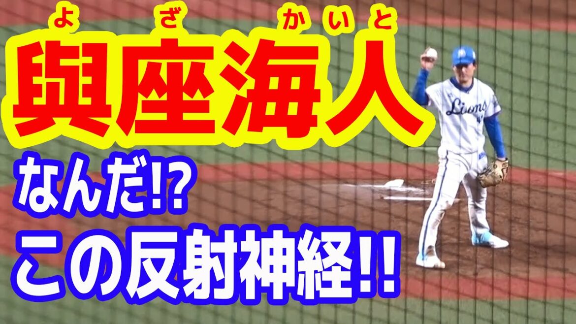 與座海人投手の頭部付近を襲った安田尚憲選手の鋭い打球を、身を翻しながらキャッチしたシーンです。