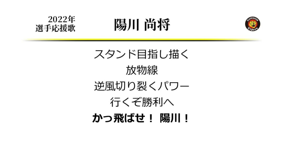 今シーズン限りで阪神から移籍する陽川選手の応援歌です。 こういうおとなしい印象の応援歌は、2小節目と4小節目の音を変えるだけでも、 8小節の中でより展開が広がるようになるのでは、というすごく個人的な応援歌評。 Hanshin TigersHanshin Tigers (Baseball Team)Naomasa Yohkawa (Baseball Player)なんぶふじ応援歌阪神タイガース陽川尚将 NPBHUB.COM | The Fanbase of Nippon Baseball & Nippon Professional Baseball