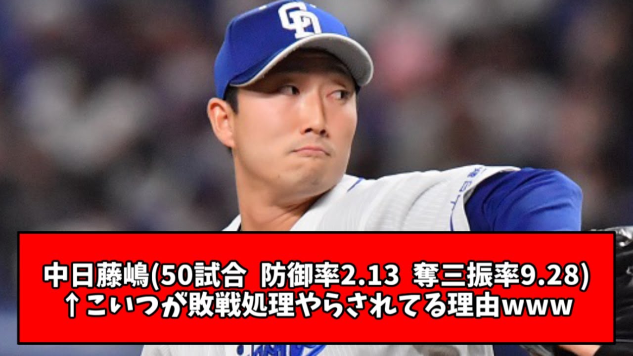 中日藤嶋(50試合 防御率2.13 奪三振率9.28)
