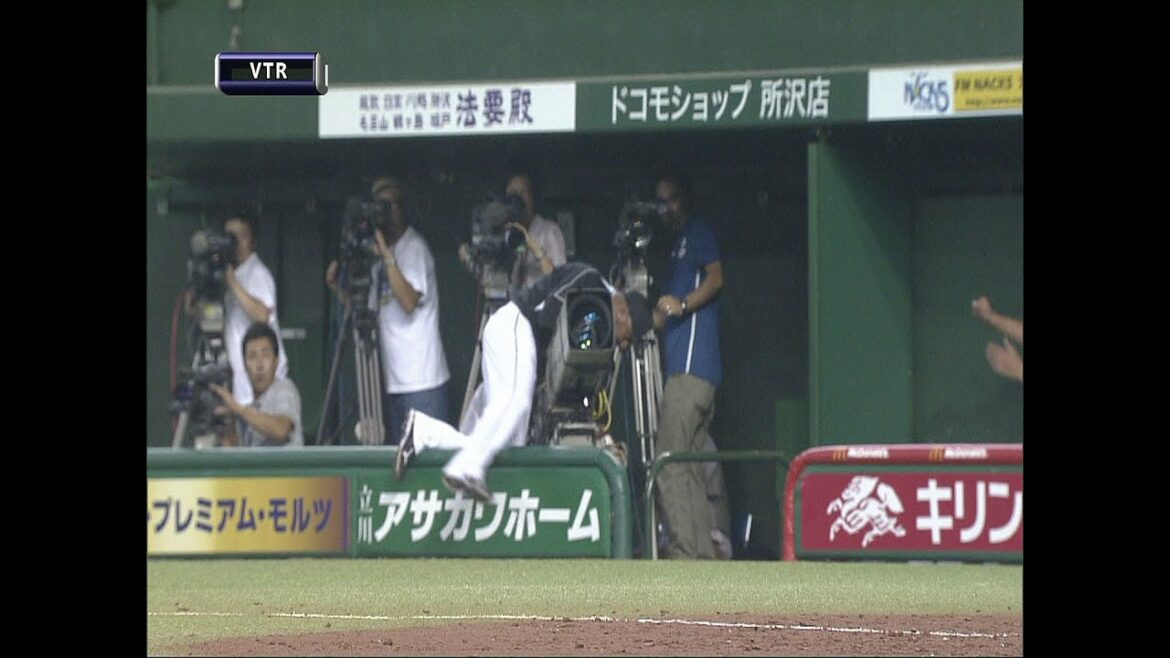 3回、埼玉西武・中村剛也が1塁側ファウルグラウンドへフライを高々と打ち上げると、千葉ロッテのファースト・カスティーヨがカメラマン席にあるTVカメラに乗っかりながらキャッチ。助っ人の執念のプレーで大ピンチを凌いだ。(2011年7月28日 埼玉西武ライオンズ対千葉ロッテマリーンズ) 0728201107282011年7月28日Tohoku Rakuten Golden Eaglesカスティーヨカスティーヨ 野球パ・リーグパシフィックリーグマリーンズライオンズロッテ千葉埼玉好プレー東北楽天ゴールデンイーグルス西武西武ドーム NPBHUB.COM | The Fanbase of Nippon Baseball & Nippon Professional Baseball