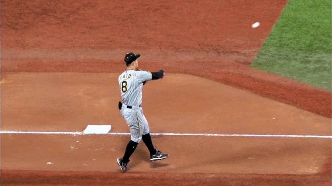 佐藤輝明のメジャーリーガー並みのスローイング!ファインプレー!阪神タイガース