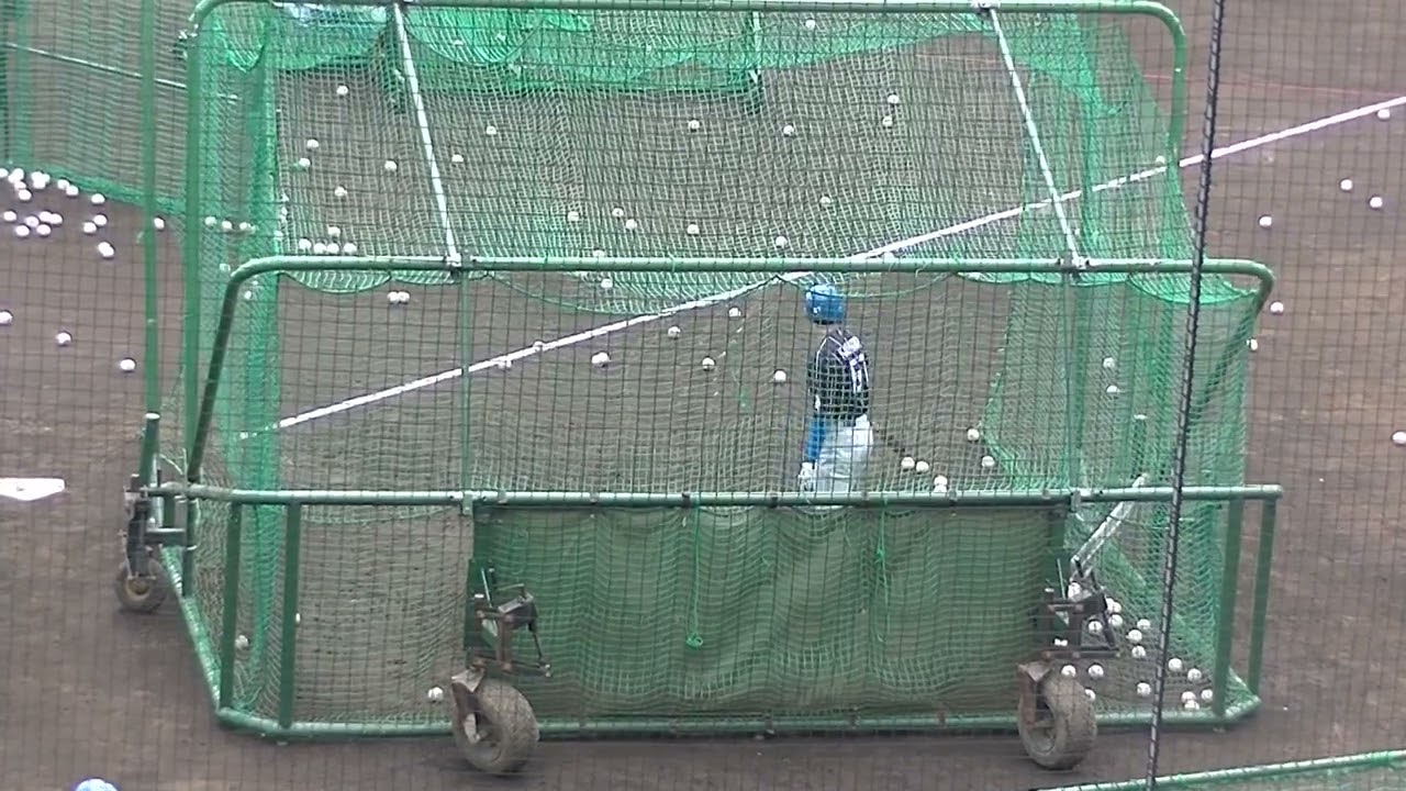 片岡奨人のマシンを使った打撃練習 【読売ジャイアンツ 対 北海道日本ハムファイターズ 2022年3月30日 ジャイアンツ球場】